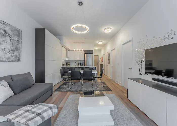 O apartamento está localizado no distrito Etobicoke, a 15 minutos de carro do aeroporto em Ilha de Toronto. O acesso privada à uma praia privada é fornecido. O apartamento Shore Breeze também fica a uma distância de 20 minutos de carro do Estádio BMO Field.